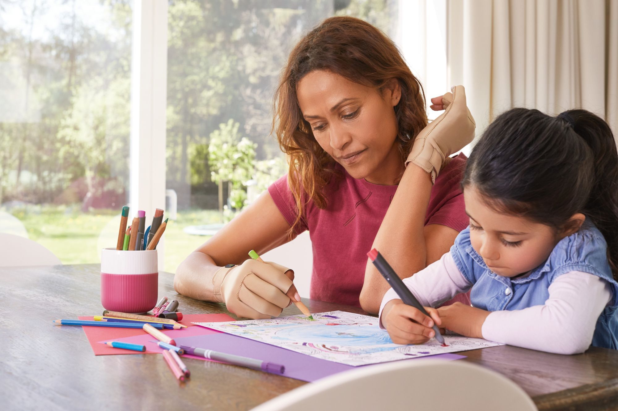 - Delikatny ucisk zmniejsza obrzęki, poprawiając ruchomość palców i dłoni.