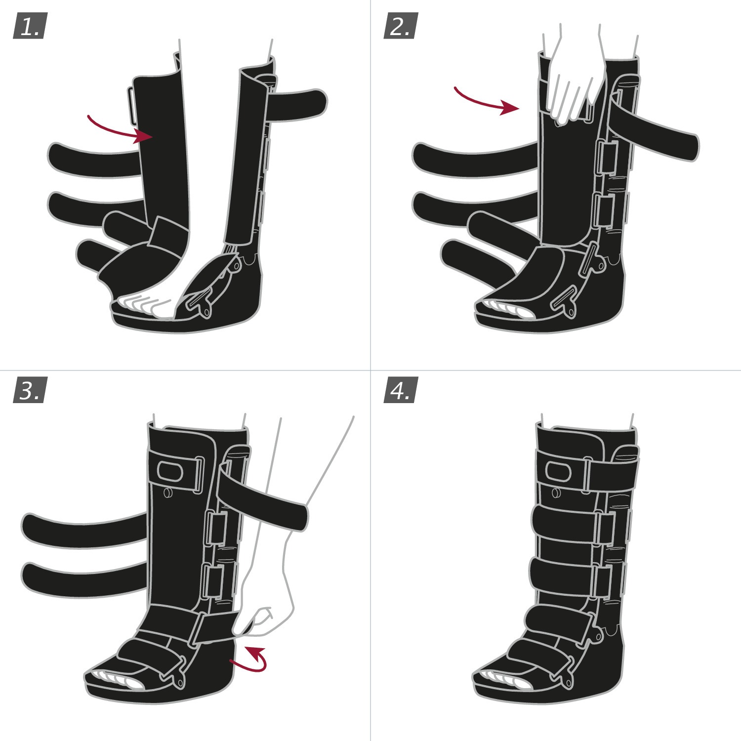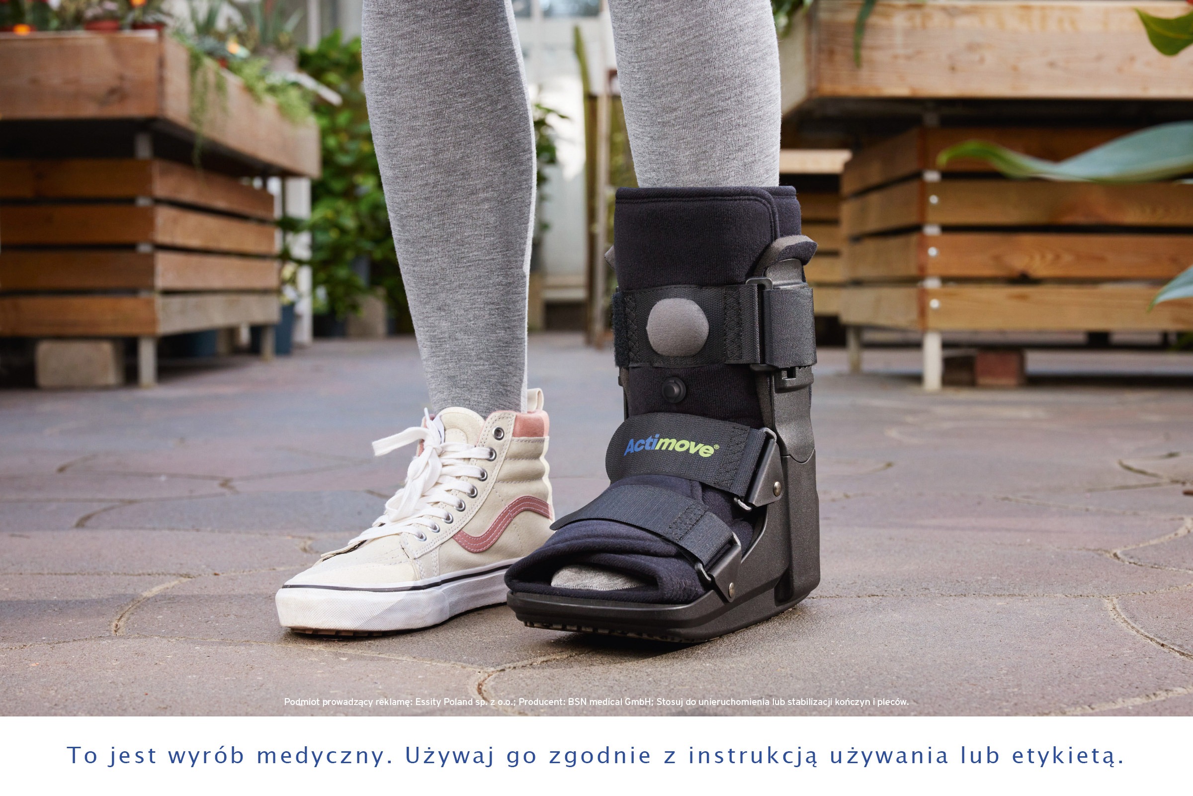 Pneumatyczna orteza Actimove PRO na goleń i stopę zaprojektowana do stabilizacji i ochrony podudzia, kostki oraz stopy. Jest to lekki ortopedyczny but z łatwo regulowanymi poduszkami pneumatycznymi, które pomagają kontrolować obrzęk. Dodatkowo, orteza wyposażona jest w antypoślizgowe rzepy obwodowe, które zwiększają stabilność.
