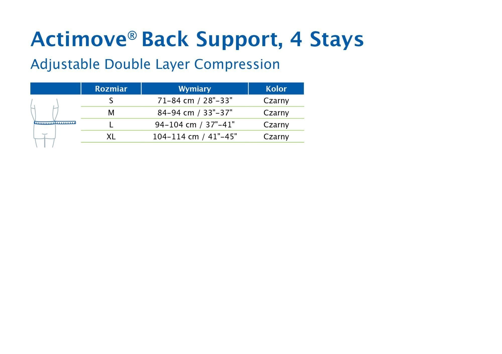 - Wzmocnione podparcie: Dwuwarstwowy ucisk (pasy dociągowe) oraz cztery stalowe unieruchomienia zapewniają stabilność i lepszą kontrolę odcinka lędźwiowo-krzyżowego.