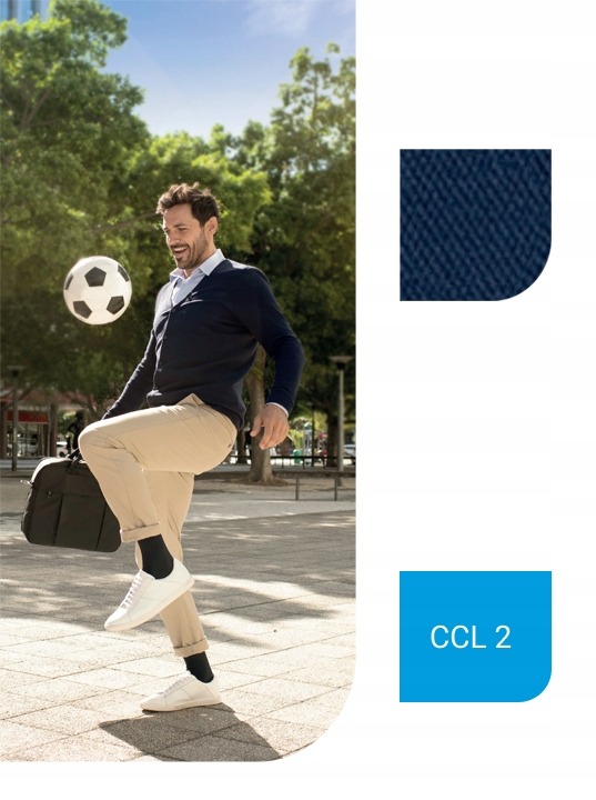 Produkty o lekkiej kompresji, czyli w 1. klasie ucisku (na opakowaniach oznaczone CCL 1), są przeznaczone do profilaktyki problemów żylnych. Noś je, żeby uniknąć chorób żylnych, nawet jeśli nie obserwujesz u siebie żadnych objawów lub kiedy zauważysz pierwsze symptomy. Możesz je stosować bez konsultacji z lekarzem, jeśli nie występują u Ciebie przeciwwskazania.
