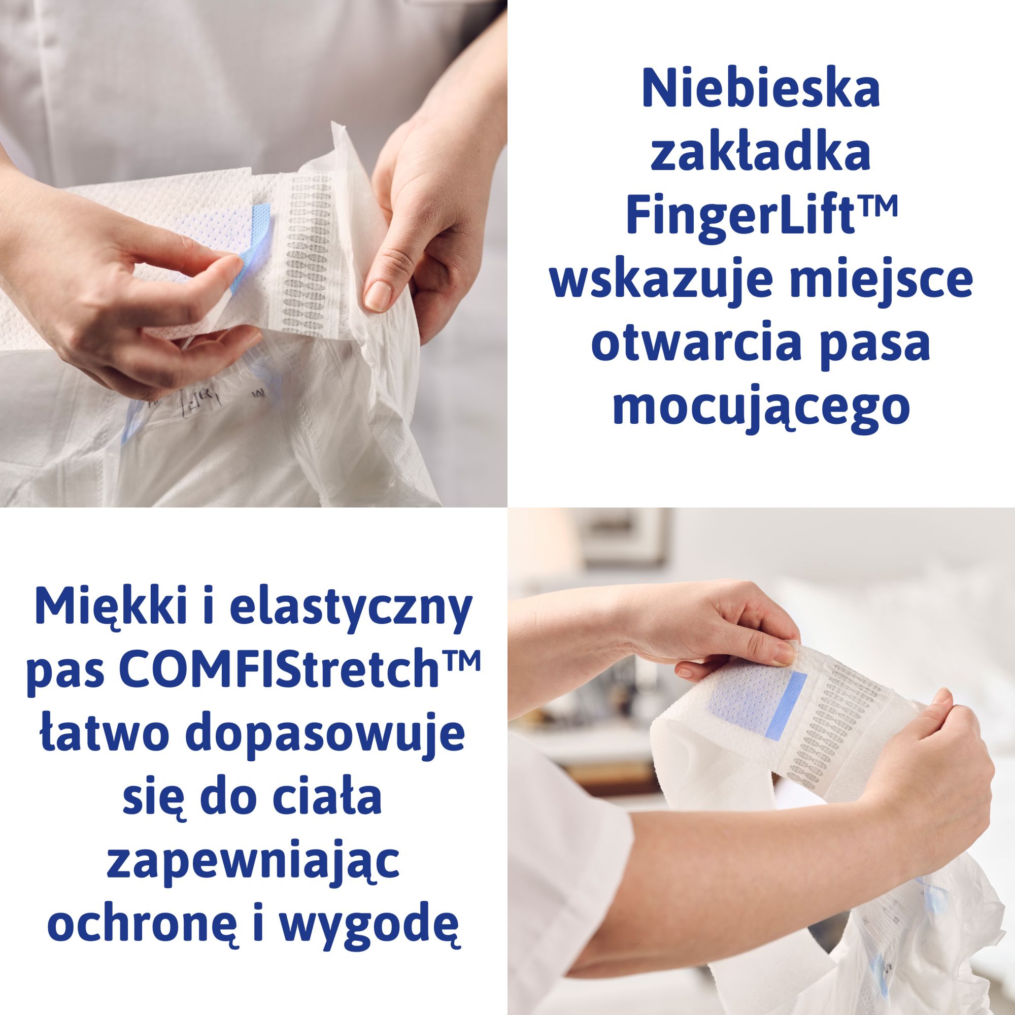 • Pas ComfiStretch umożliwia łatwą i szybką wymianę pieluchomajtek