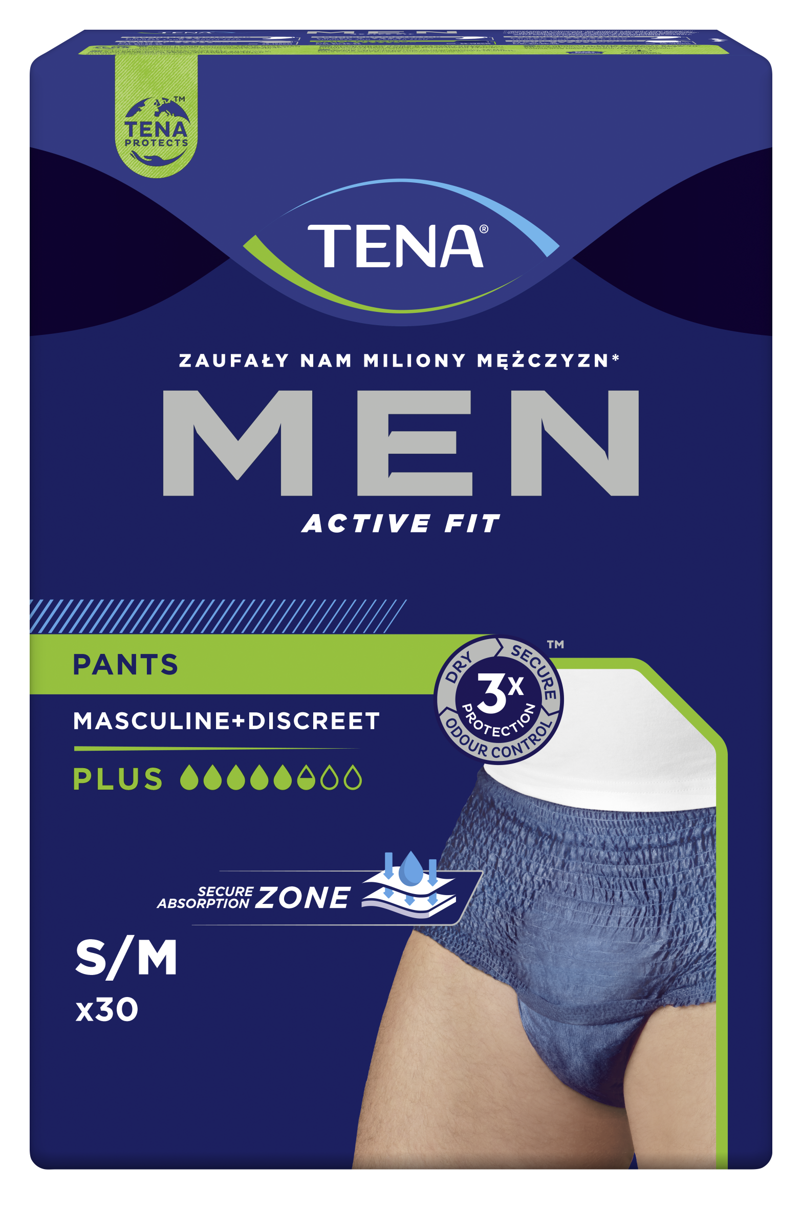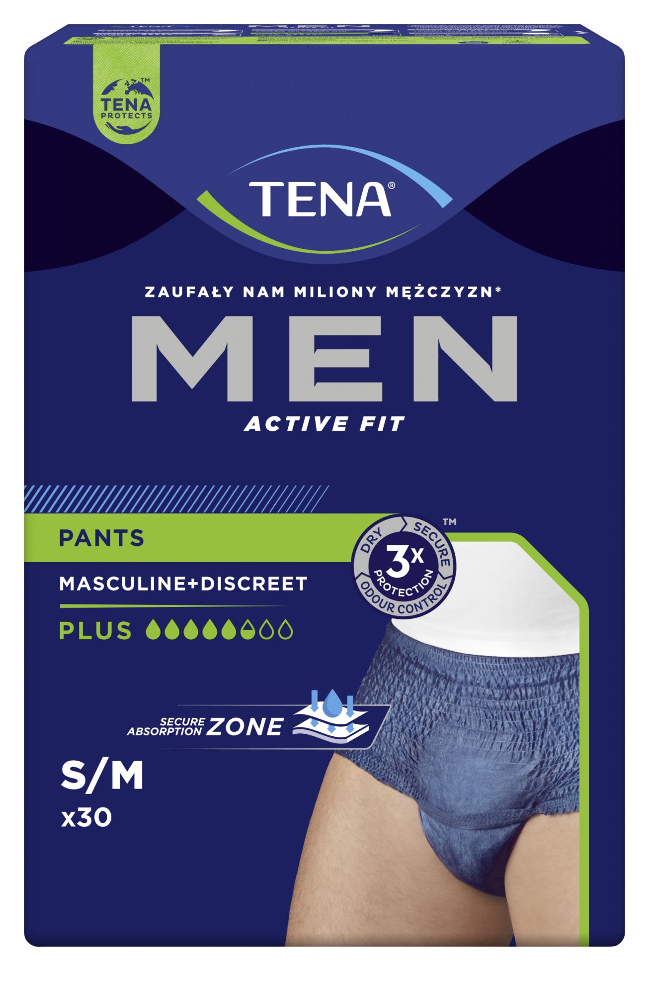 TENA Men Pants Plus Blue S/M to pierwsza w Polsce bielizna chłonna stworzona specjalnie dla mężczyzn, którzy zmagają się ze średnim i ciężkim nietrzymaniem moczu. Przeznaczona dla osób chodzących i poruszających się, gwarantuje pełną swobodę ruchów i komfort w każdej sytuacji. Dzięki anatomicznemu kształtowi i niebieskiemu, dyskretnemu kolorowi doskonale dopasowuje się do męskiej sylwetki, nie odznaczając się pod ubraniem.