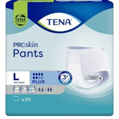 Majtki chłonne TENA Pants ProSkin Plus L to produkty chłonne zalecane do codziennego stosowania w średnim i ciężkim nietrzymaniu moczu (poziom chłonności 6/8). Zakładane jak zwykła bielizna TENA Pants ProSkin Plus L przeznaczone są dla osób chodzących, poruszających się choćby po domu, o rozmiarze 100-135 cm w pasie. Produkty TENA Pants ProSkin zapewniają Potrójną Ochornę przed przeciekaniem, długotrwałą suchość i miękkość, wspierając zdrowie skóry. Technologia FeelDry AdvancedTM użyta w ich produkcji zapewnia szybsze wchłanianie moczu i zamknięcie go z dala od skóry. Specjalne, w pełni oddychające materiały, z których wykonany jest produkt, zapewniają komfort i wspierają zdrowie skóry. Produkty TENA Pants ProSkin zostały przebadane i otrzymały akredytację Skin Health Alliance – wiodącej, niezależnej instutycji zrzeszającej ekspertów zajmujących się zdrowiem skóry. Otrzymanie akredytacji Skin Health Alliance wymaga spełnienia szeregu rygorystycznych wymagań dotyczących wpływu produktu na zdrowie skóry. Akredytacja Skin Health Alliance daje pewność, że produkty TENA Pants ProSkin są przyjazne dla skóry. Produkty TENA Pants dostępne są w różnych rozmiarach i poziomach chłonności, również w refundacji.