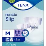 Pieluchomajtki TENA Slip ProSkin Maxi M to produkty chłonne zalecane do codziennego stosowania w średnim i ciężkim nietrzymaniu moczu. TENA Slip ProSkin przeznaczone są dla osób leżących lub niesamodzielnych. Zapewniają Potrójną Ochornę przed przeciekaniem, długotrwałą suchość i miękkość, wspierając zdrowie skóry. Technologia FeelDry AdvancedTM użyta w ich produkcji zapewnia szybsze wchłanianie moczu i zamknięcie go z dala od skóry. Specjalne, w pełni oddychające materiały, z których wykonany jest produkt, zapewniają komfort i wspierają zdrowie skóry. Produkty TENA Slip ProSkin zostały przebadane i otrzymały akredytację Skin Health Alliance – wiodącej, niezależnej instutycji zrzeszającej ekspertów zajmujących się zdrowiem skóry. Otrzymanie akredytacji Skin Health Alliance wymaga spełnienia szeregu rygorystycznych wymagań dotyczących wpływu produktu na zdrowie skóry. Akredytacja Skin Health Alliance daje pewność, że produkty TENA Slip ProSkin są przyjazne dla skóry. TENA Slip ProSkin są testowane dermatologicznie. Pieluchomajtki TENA Slip ProSkin są wykonane z delikatnego i miękkniego materiału, który zapewnia komfort i zapobiega podrażnieniom. Posiadają szerokie przylepcorzepy wielokrotnego zapinania i odpinania. Dzięki systemowi Odour Neutralizer neutralizują nieprzyjemny zapach. Dostępne są w różnych rozmiarach i poziomach chłonności, również w refundacji.