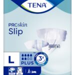 Pieluchomajtki TENA Slip ProSkin Plus L to produkty chłonne zalecane do codziennego stosowania w średnim i ciężkim nietrzymaniu moczu. TENA Slip ProSkin przeznaczone są dla osób leżących lub niesamodzielnych. Zapewniają Potrójną Ochornę przed przeciekaniem, długotrwałą suchość i miękkość, wspierając zdrowie skóry. Technologia FeelDry AdvancedTM użyta w ich produkcji zapewnia szybsze wchłanianie moczu i zamknięcie go z dala od skóry. Specjalne, w pełni oddychające materiały, z których wykonany jest produkt, zapewniają komfort i wspierają zdrowie skóry. Produkty TENA Slip ProSkin zostały przebadane i otrzymały akredytację Skin Health Alliance – wiodącej, niezależnej instutycji zrzeszającej ekspertów zajmujących się zdrowiem skóry. Otrzymanie akredytacji Skin Health Alliance wymaga spełnienia szeregu rygorystycznych wymagań dotyczących wpływu produktu na zdrowie skóry. Akredytacja Skin Health Alliance daje pewność, że produkty TENA Slip ProSkin są przyjazne dla skóry. TENA Slip ProSkin są testowane dermatologicznie. Pieluchomajtki TENA Slip ProSkin są wykonane z delikatnego i miękkniego materiału, który zapewnia komfort i zapobiega podrażnieniom. Posiadają szerokie przylepcorzepy wielokrotnego zapinania i odpinania. Dzięki systemowi Odour Neutralizer neutralizują nieprzyjemny zapach. Dostępne są w różnych rozmiarach i poziomach chłonności, również w refundacji.