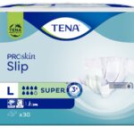 Pieluchomajtki TENA Slip ProSkin Super L to produkty chłonne zalecane do codziennego stosowania w średnim i ciężkim nietrzymaniu moczu. TENA Slip ProSkin przeznaczone są dla osób leżących lub niesamodzielnych. Zapewniają Potrójną Ochornę przed przeciekaniem, długotrwałą suchość i miękkość, wspierając zdrowie skóry. Technologia FeelDry AdvancedTM użyta w ich produkcji zapewnia szybsze wchłanianie moczu i zamknięcie go z dala od skóry. Specjalne, w pełni oddychające materiały, z których wykonany jest produkt, zapewniają komfort i wspierają zdrowie skóry. Produkty TENA Slip ProSkin zostały przebadane i otrzymały akredytację Skin Health Alliance – wiodącej, niezależnej instutycji zrzeszającej ekspertów zajmujących się zdrowiem skóry. Otrzymanie akredytacji Skin Health Alliance wymaga spełnienia szeregu rygorystycznych wymagań dotyczących wpływu produktu na zdrowie skóry. Akredytacja Skin Health Alliance daje pewność, że produkty TENA Slip ProSkin są przyjazne dla skóry. TENA Slip ProSkin są testowane dermatologicznie. Pieluchomajtki TENA Slip ProSkin są wykonane z delikatnego i miękkniego materiału, który zapewnia komfort i zapobiega podrażnieniom. Posiadają szerokie przylepcorzepy wielokrotnego zapinania i odpinania. Dzięki systemowi Odour Neutralizer neutralizują nieprzyjemny zapach. Dostępne są w różnych rozmiarach i poziomach chłonności, również w refundacji.